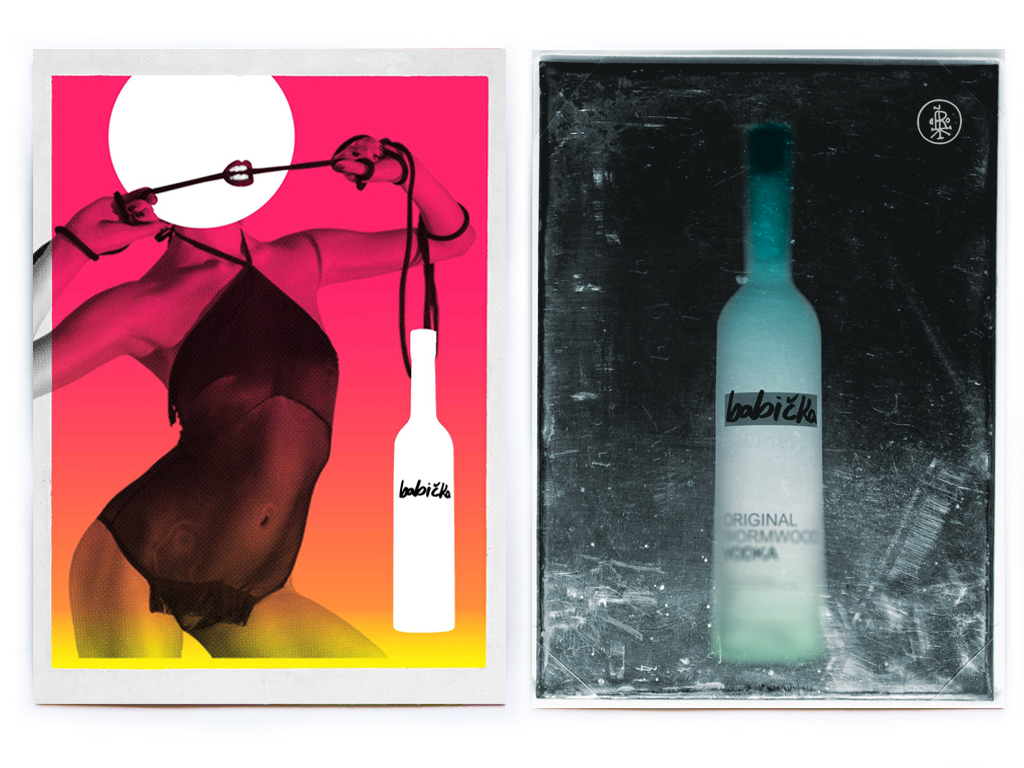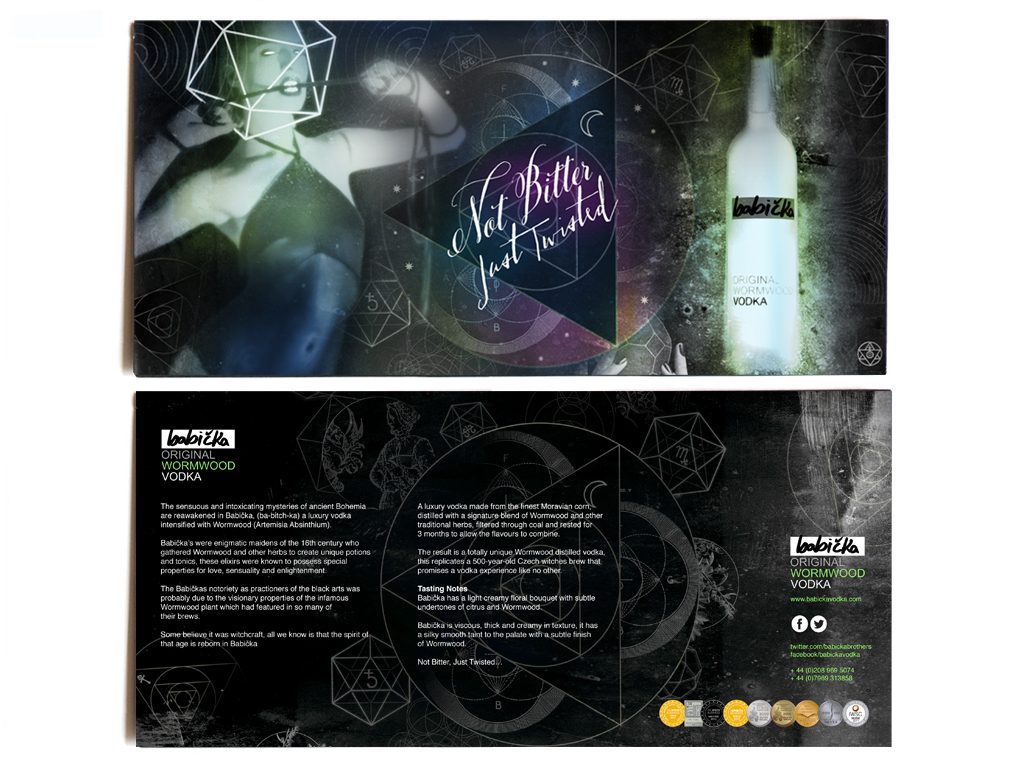 The vodka contained wormwood, the psychoactive ingredient in absinthe. So a more magical/gothic approach for Europe and for South America they wanted a brighter playful rendition of the image.