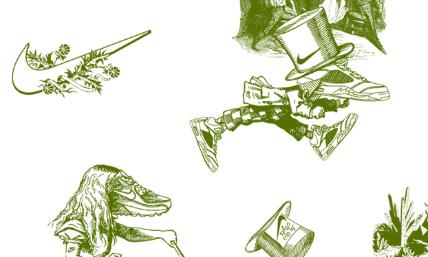 Interior design graphics and illustration for Nike design offices, D'Arbly St., London.