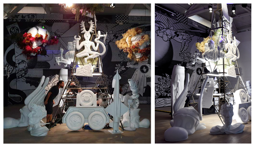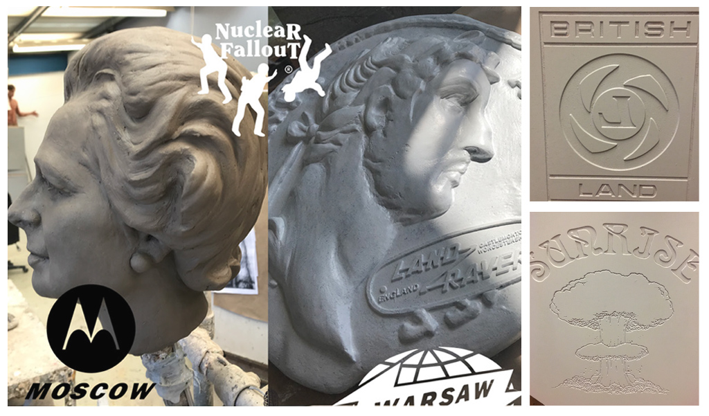 The Story is told with sculptures of Humberpigs from the troubles, the relics of the cold war , machines and vehicles.